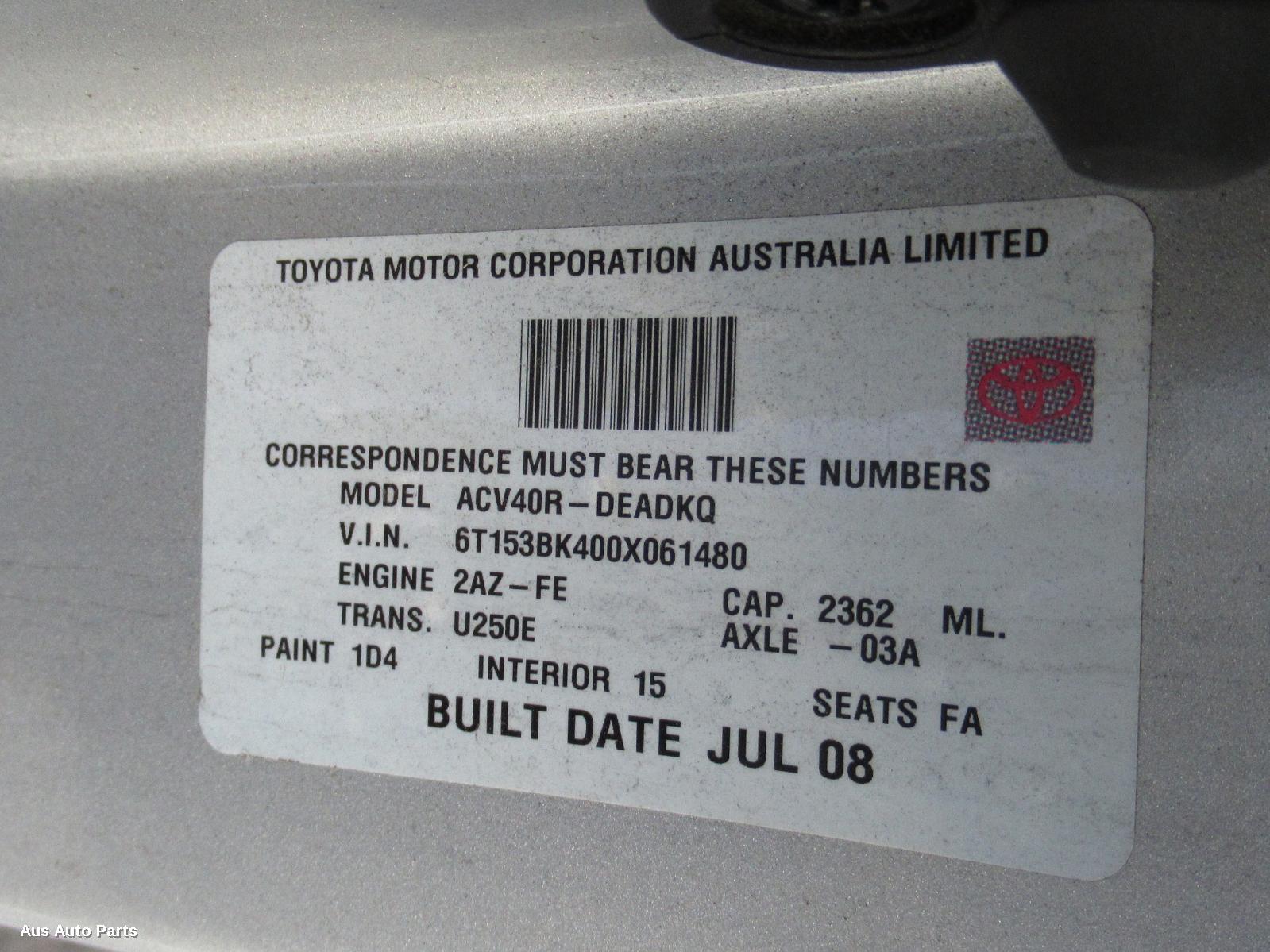 engine ecu, acv40, 2.4, auto t/m type, ecu only, 2az-fe, 06/06-11/11
