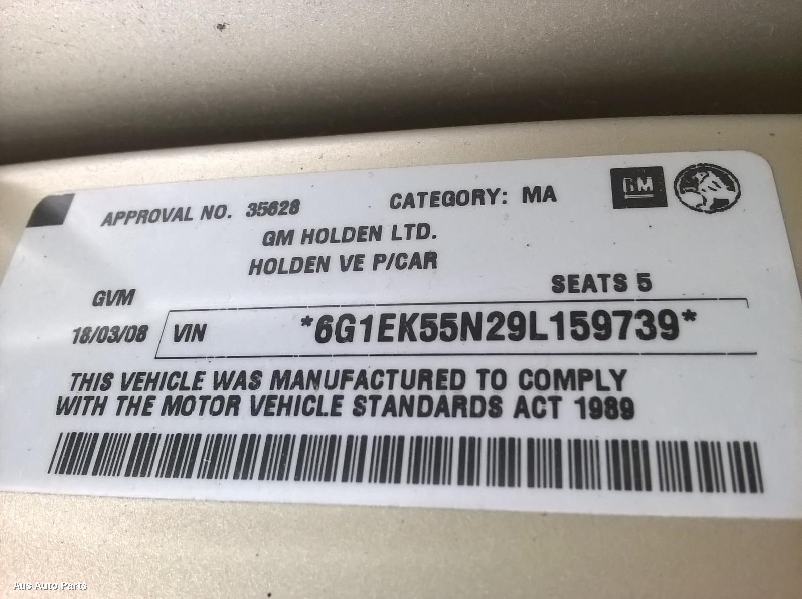 ve, v6, auto, 4 speed, sedan/wagon, ks code, 08/06-08/09