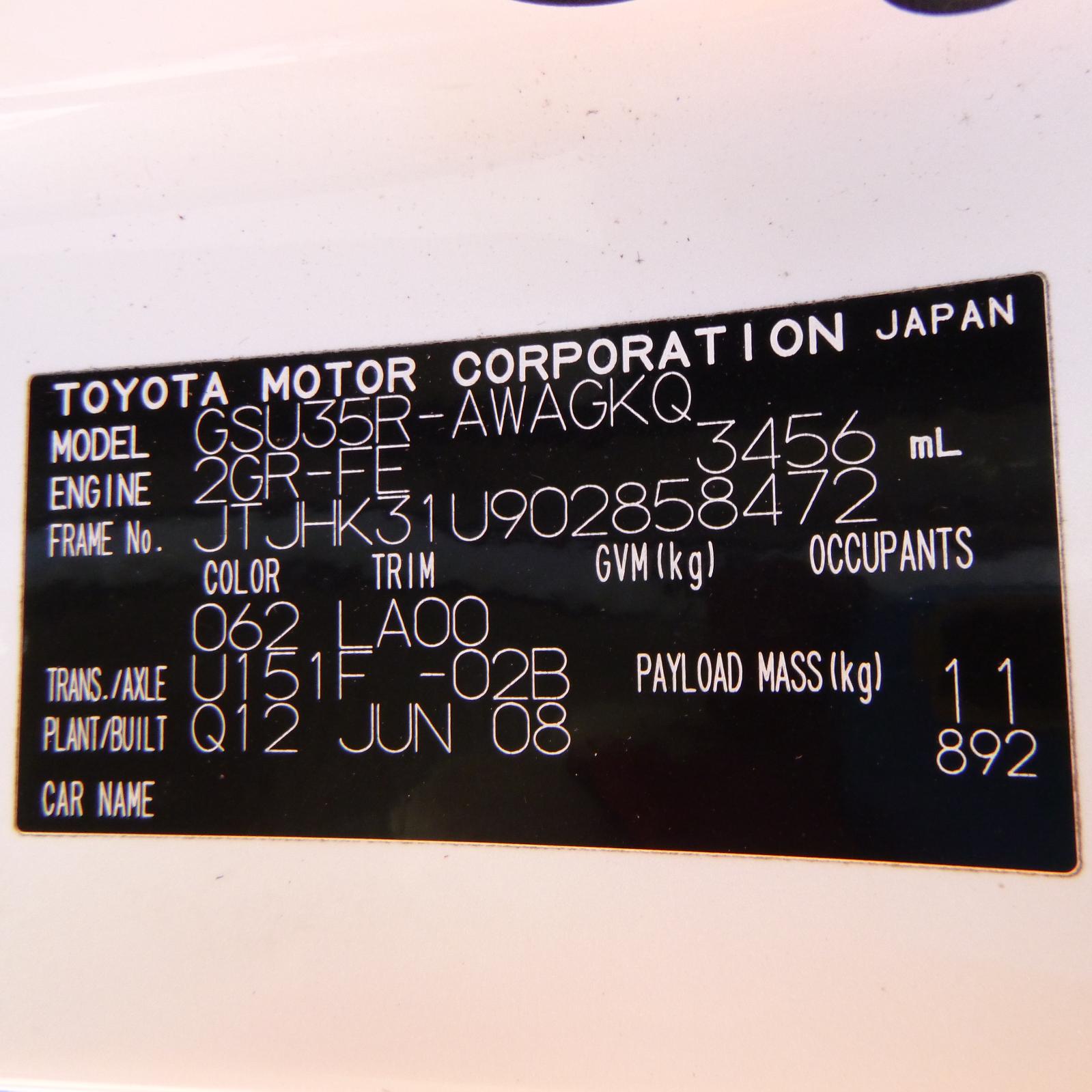 3.5, 2gr, rx350, gsu3#, 03/06-11/08