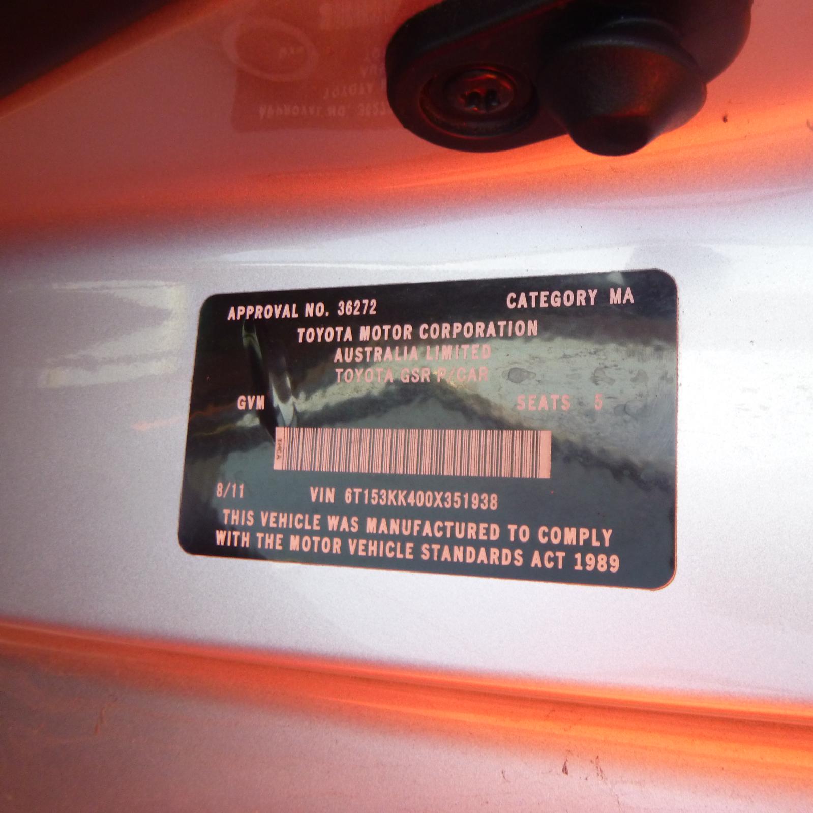 outer, rh front/rh rear, touring/at-x/prodigy/sportivo zr6, colour coded, gsv40r, 09/09-03/12