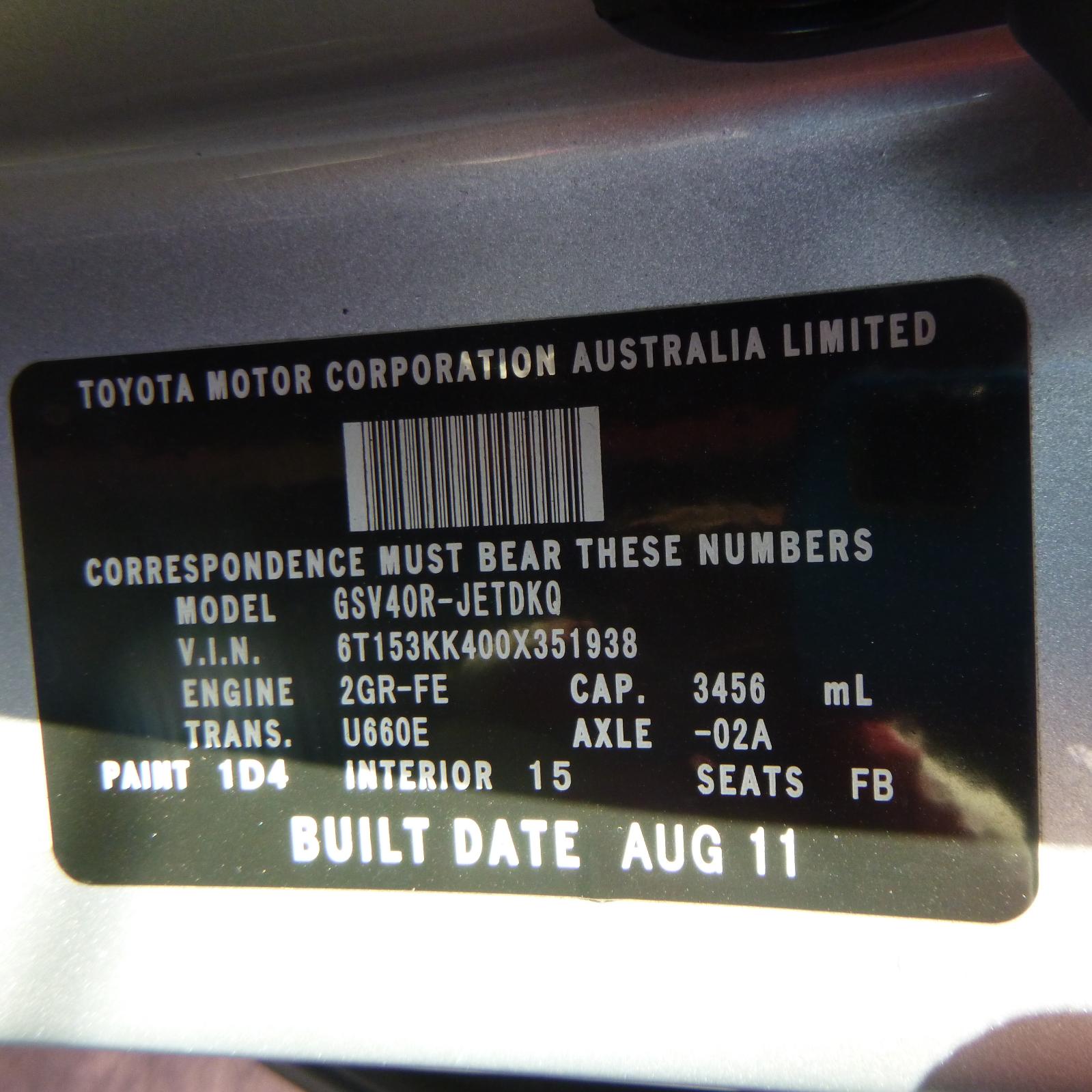 lh front, gsv40r, 10/06-03/12