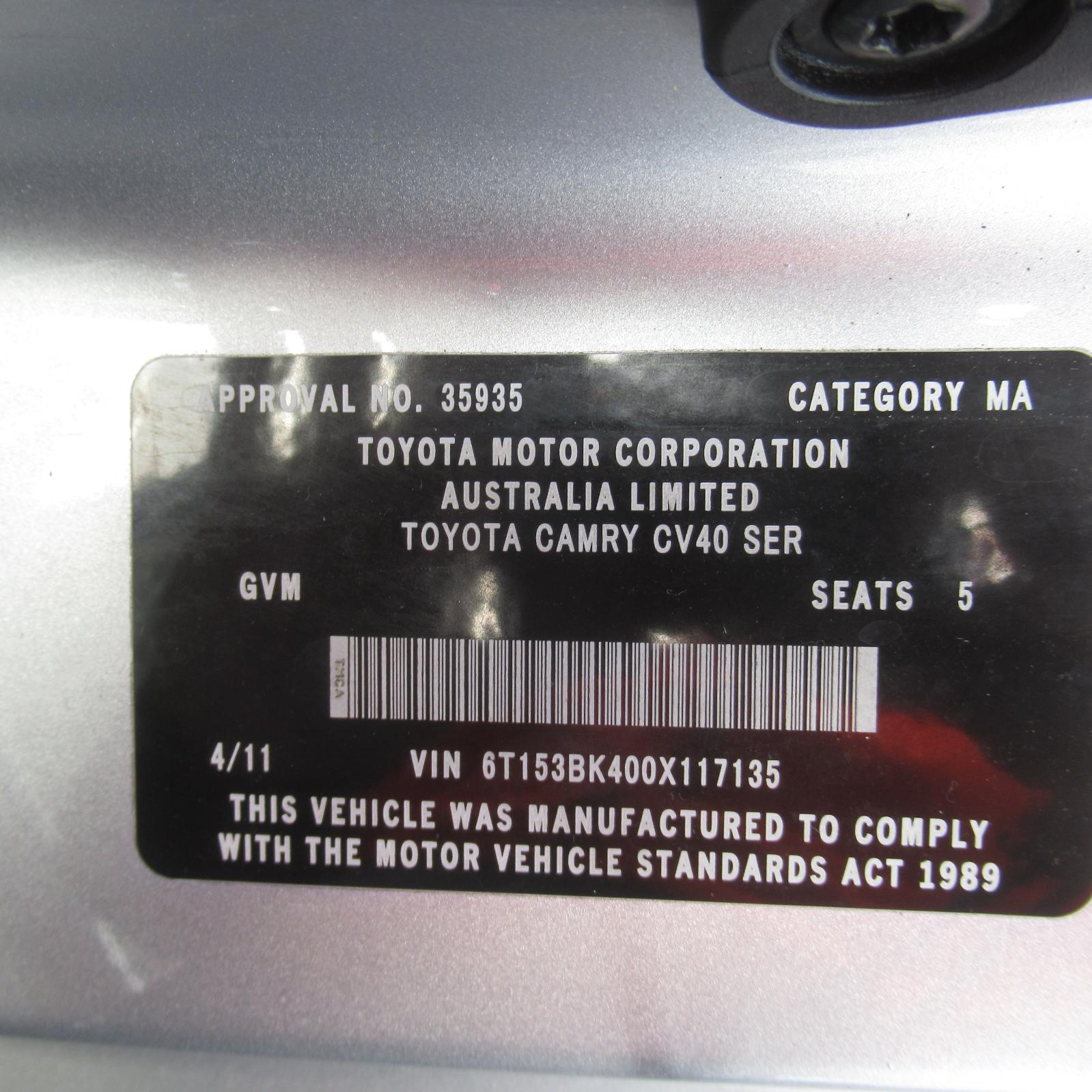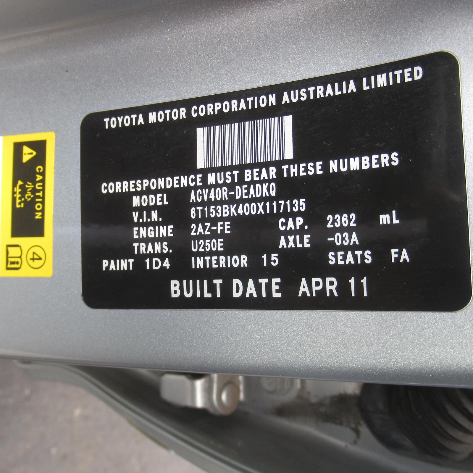 right rear door lock, acv40, 06/06-11/11