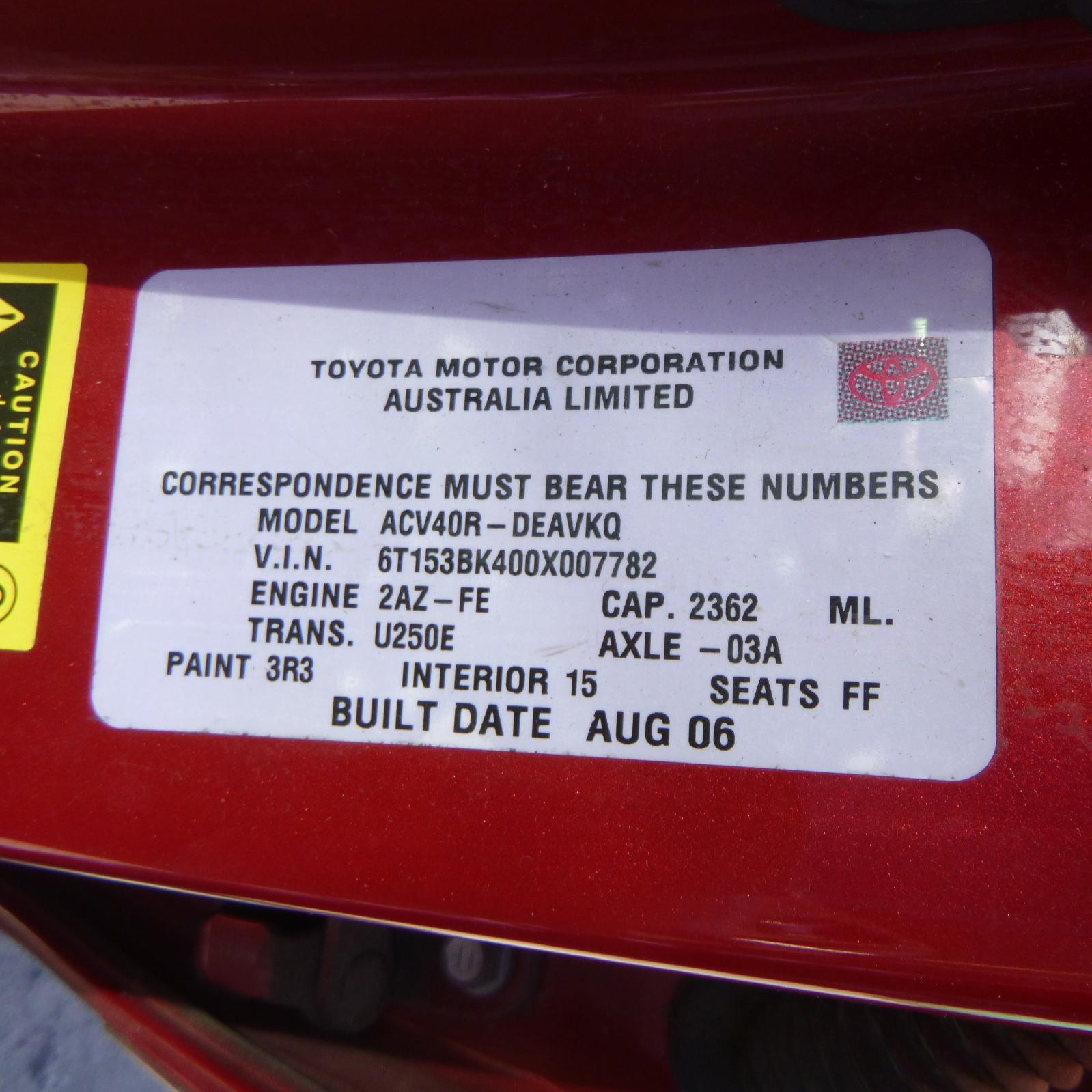 bootlid lamp (lh side), acv40/sportivo, 06/06-06/09