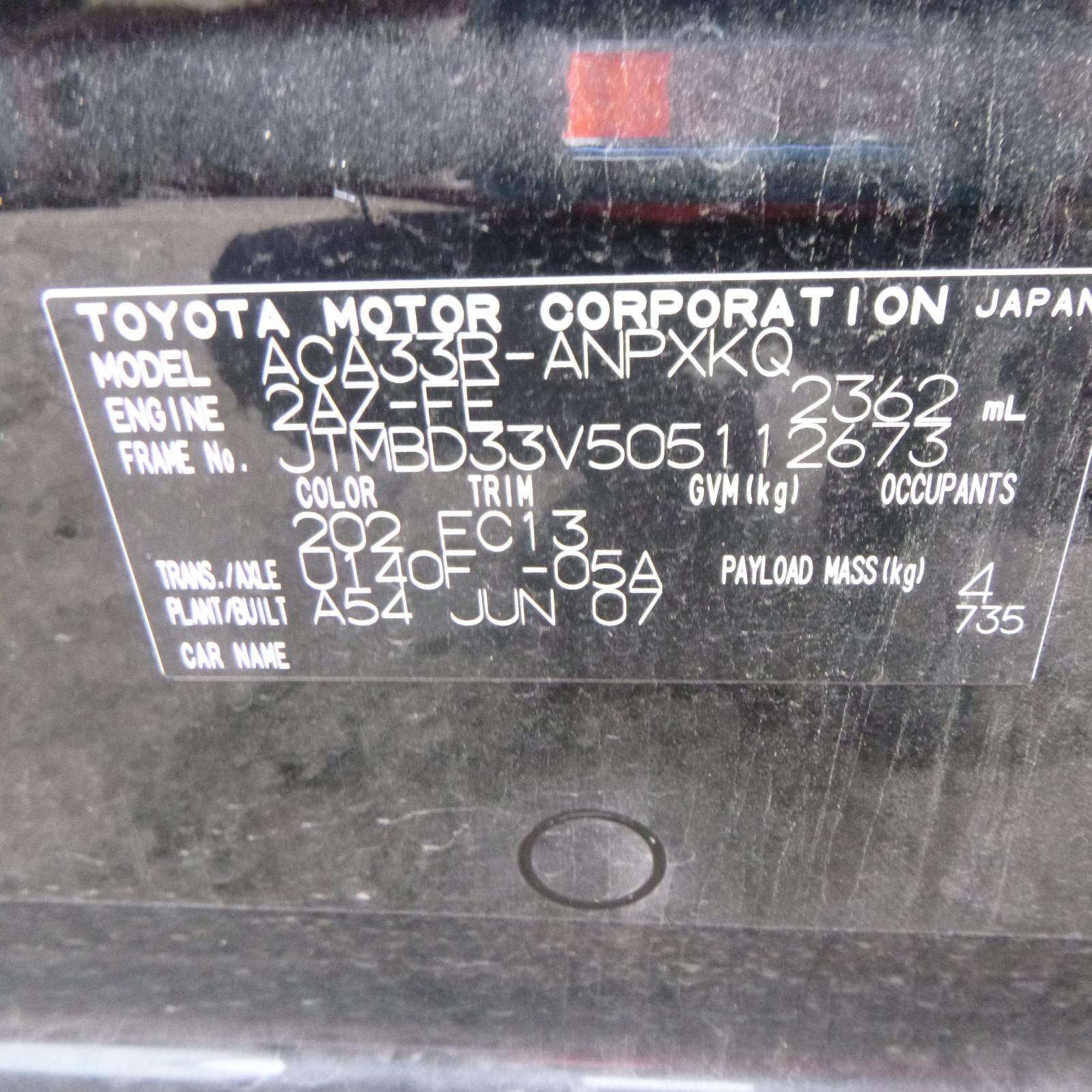 lh front/lh rear/rh rear, aca33, 11/05-10/08