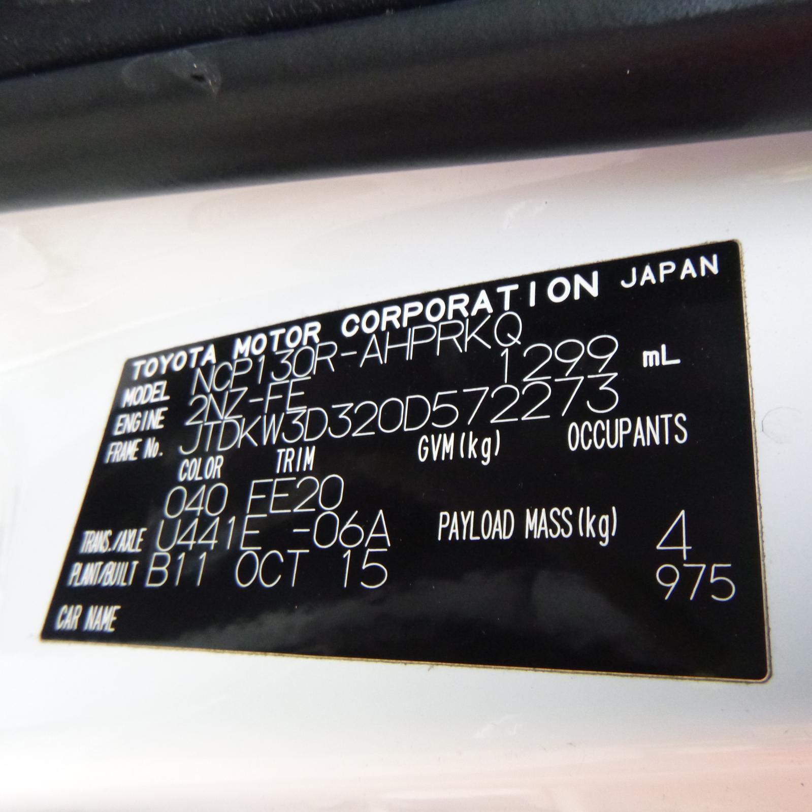 rh rear, seat belt only, 5dr hatch, ncp13#, 08/11-12/19